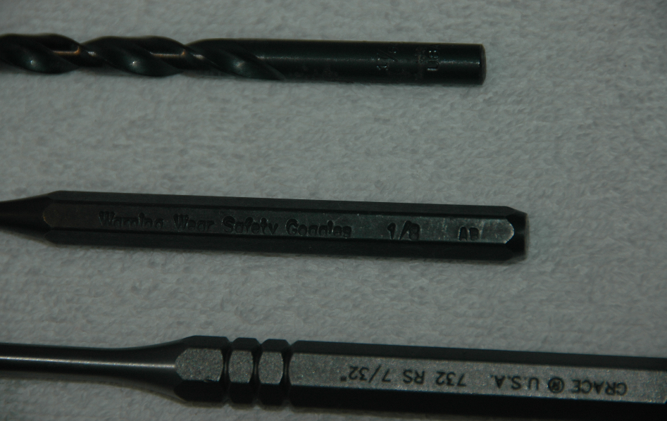 - Center punch 1/8. Used to pop the multiple axle pins of the lower housing.